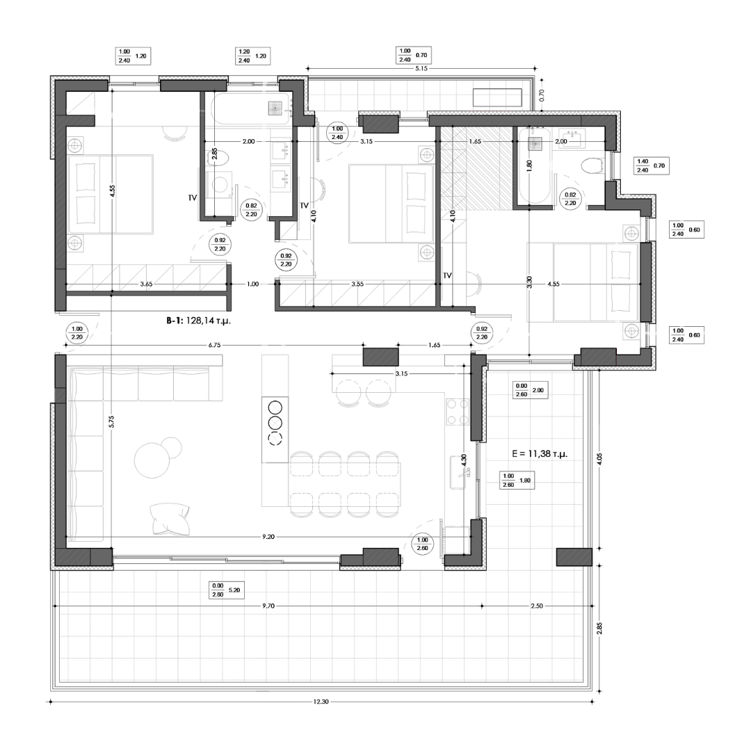 Situated on the second floor, this 128.14 m² apartment is designed for those seeking a balance of luxury and functionality. It boasts three bedrooms, two bathrooms, and an expansive living area that serves as a central hub for family and guests. Two balconies provide views of the surrounding Riviera landscape, while the premium insulation and A++ energy rating guarantee comfort and efficiency year-round.